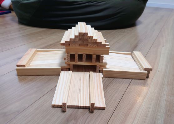 学童保育所で人気のカプラブロック。この作品は4年生の男の子2人が途中に崩れてしまっても何度も作り直し完成させた作品です。とても立派なお城が出来たので、本人たちも大喜びでした。カプラブロックを組み立てている間の集中力はすごかったです。