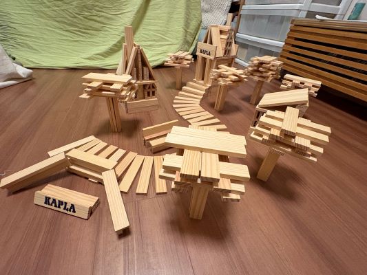 6歳のお兄ちゃんの誕生日に買ってもらったKAPLA。「KAPLA名人になる!」と本を見ながら一人で試行錯誤してます。