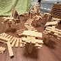 北海道帯広市の放課後デイサービス事業所です。小学校4年生のS.H.くんがカプラブロックで作品をつくりました。左の写真の作品名は「要塞」、右の写真の作品名は「立体クモの巣」です。商品の箱の写真からヒントを得て、見事な集中力で作り上げました。