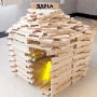KAPLAブロックを200ピース全部使って、お城をイメージして作りました。屋根のところが何度も崩れて難しかったです。