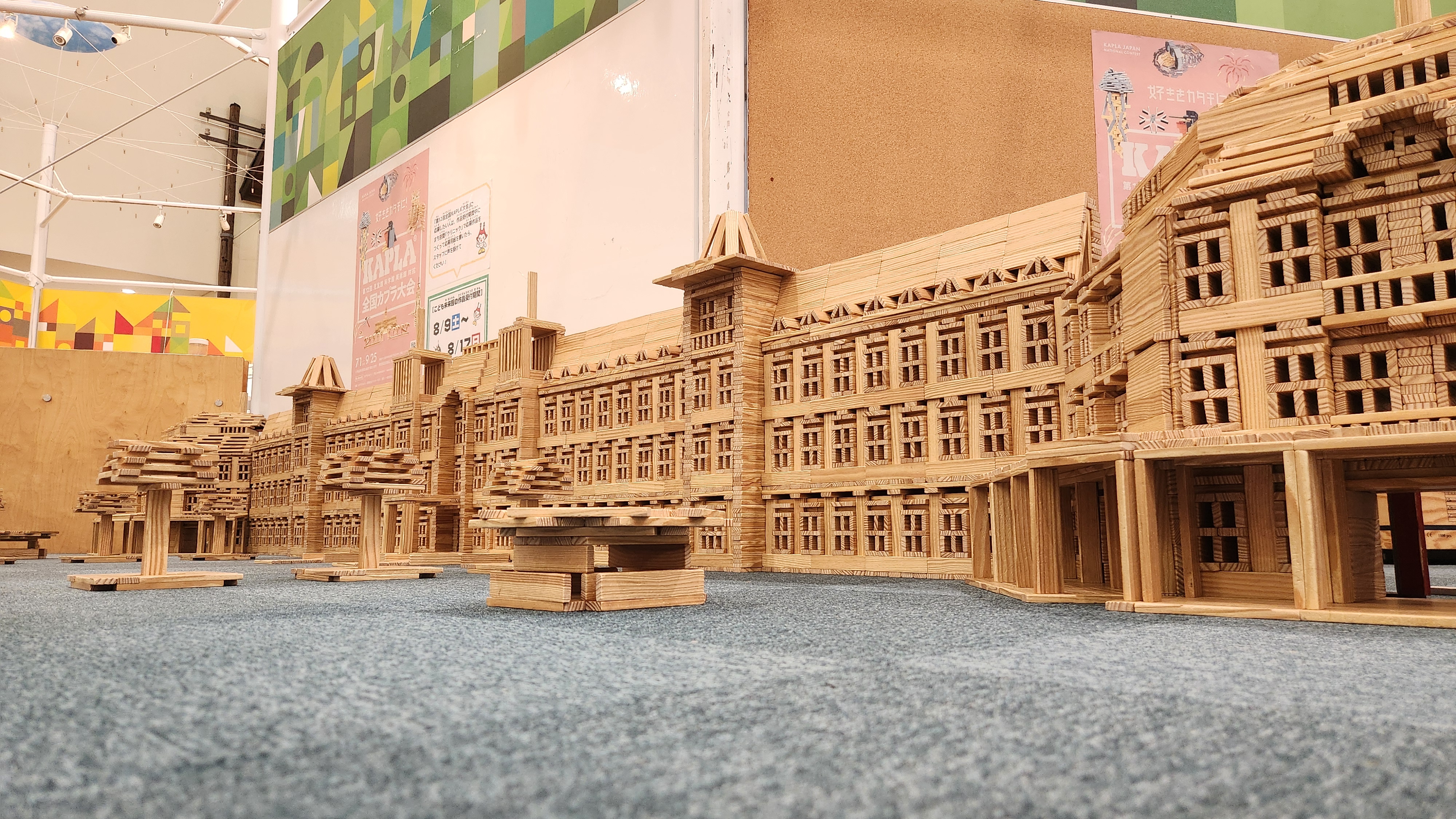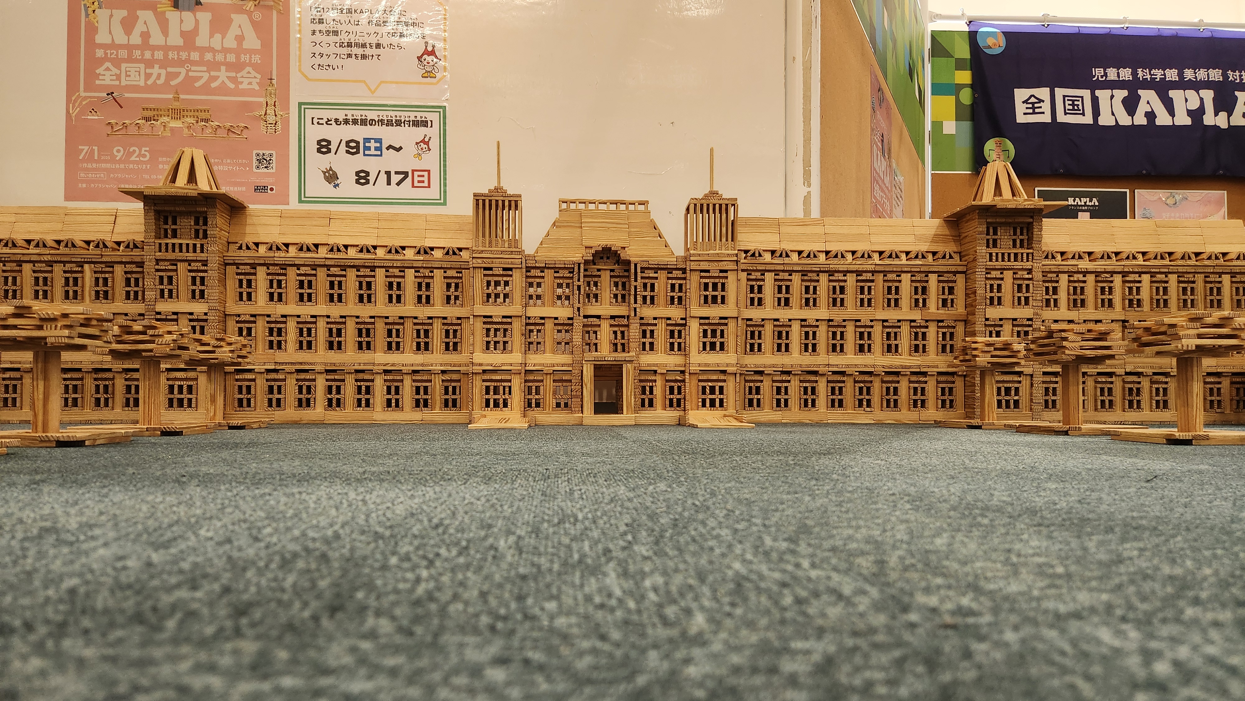 カプラで再現する時、より実物に近いよう、リアルさを追求した結果、想像以上に大きくなってしまいました。そのため、12時間もかかってしまいました。本当は周りの建物も再現したかったけれど、時間やカプラの枚数的にできませんでした。