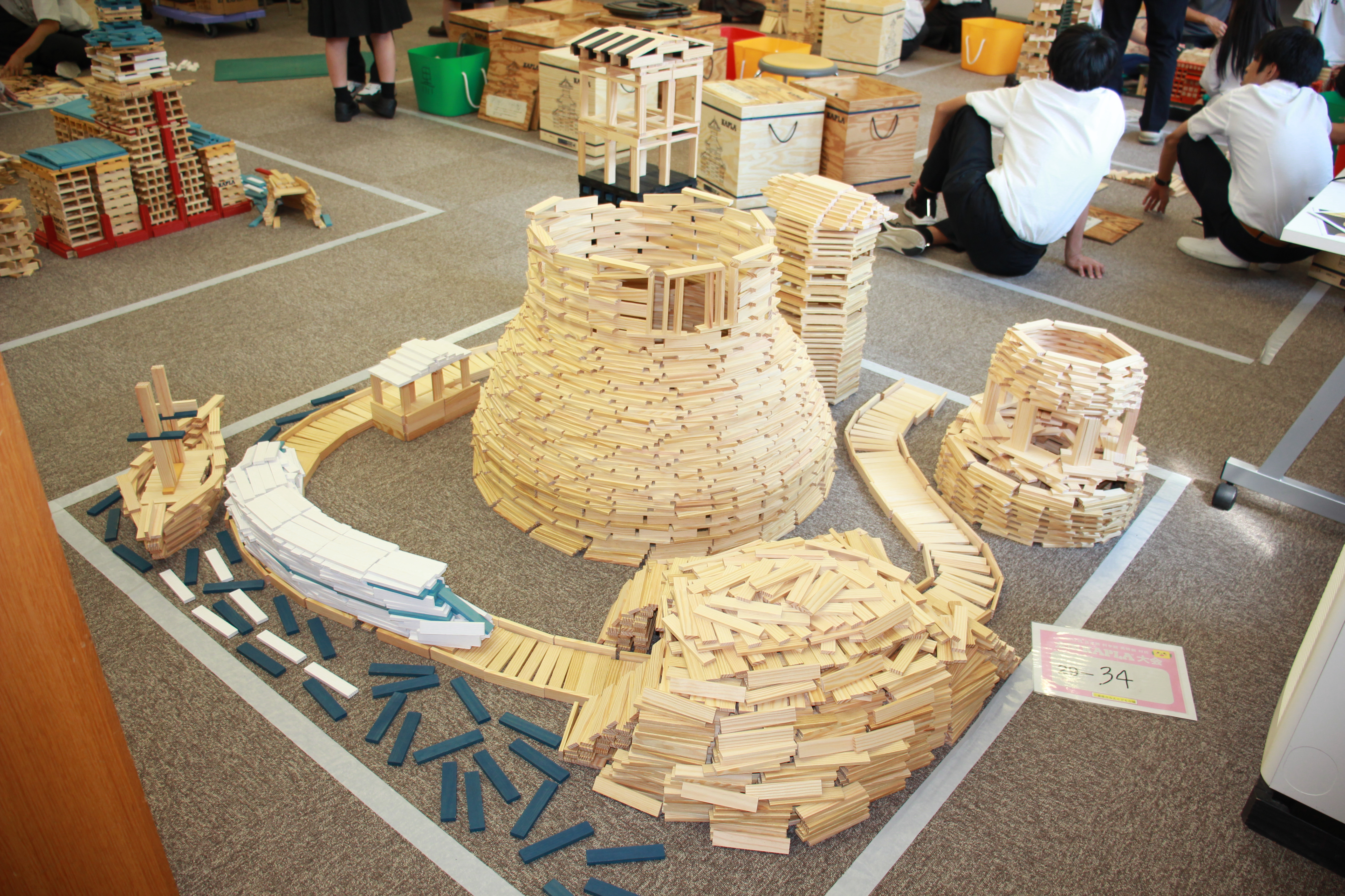 | 作品PR | 僕たちは6人で製作しました。特にがんばったところは中央にあるドームです。ドームの存在感と半球になるように形を作るのが難しかったです。他にはリニアモーターを白色で作るところにこだわりました。50年後では三重にもリニアが通っていると思い作りました。リニアの通るトンネルは山をけずったトンネルをイメージして作りました。自然の中にも高層ビルがあったり、ショッピングができたり、働く場がある三重をイメージして作りました。自然の不規則な形を表現するのに多くのカプラを使用して自然にあるような山を作りつつ、くずれないようバランスをとりました。 | ||