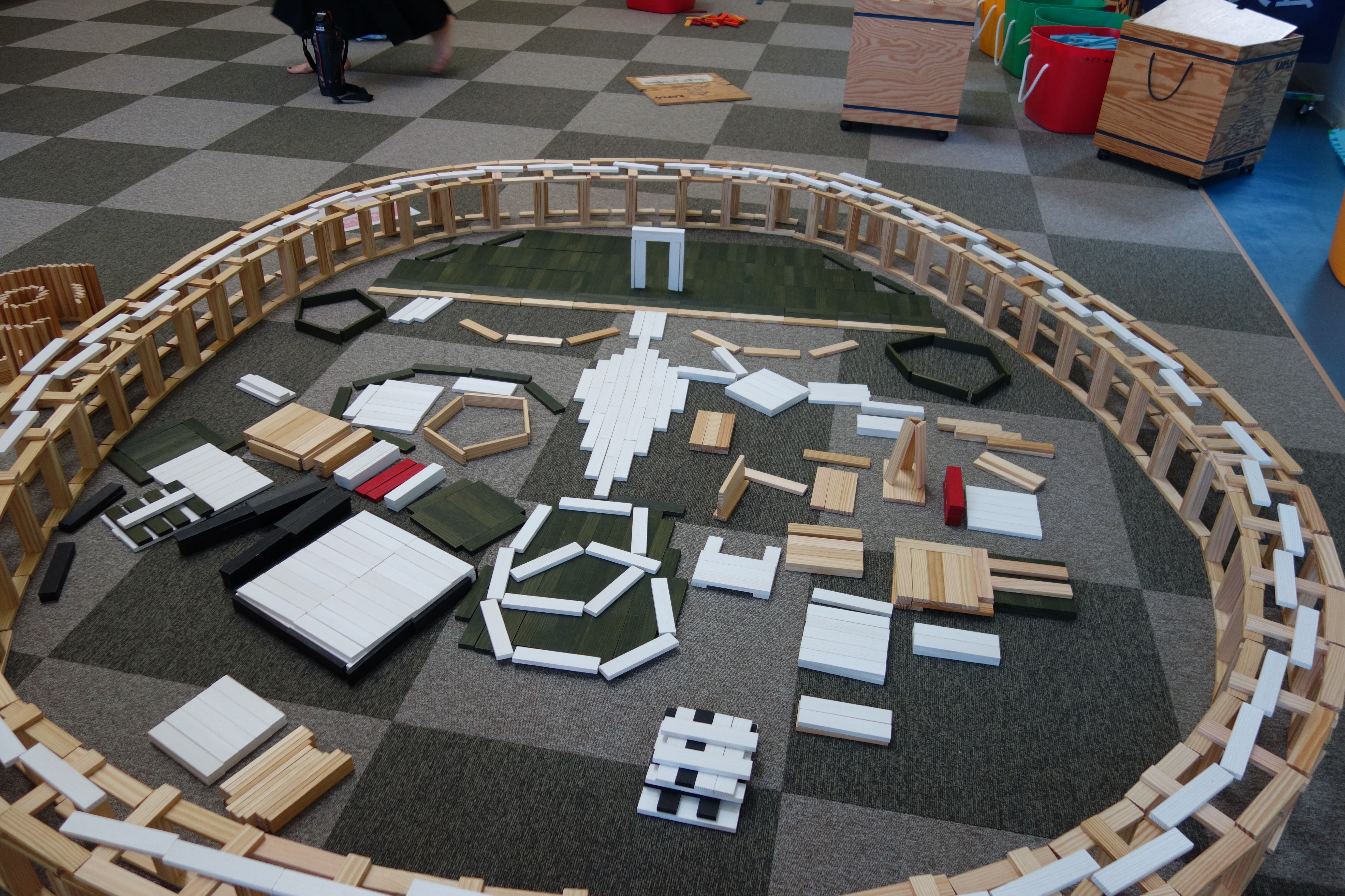 5時間かけて、ドミノのように何度も倒れながらも、作っていた大屋根リングが迫力があるね!水のエリアや海外パビリオンとのバランスもかっこよくできてるね☆彡