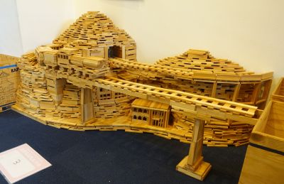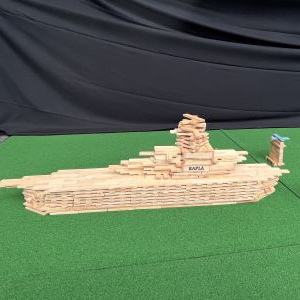 飛行機に大量に使われているカプラボールとは、1本たてた上に八角形のボールを乗せるKAPLA考案者の作品です。本作は、ひとつ完成するだけでも大変なボールの連続で機体を作るというとんでもない作品。さらにその機体を斜め上に傾かせるのは尋常ではないテクニックです。翼のしなりまで表現した作者のこだわりに敬意を表します。
