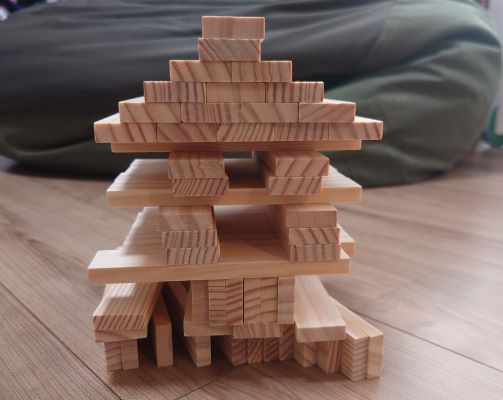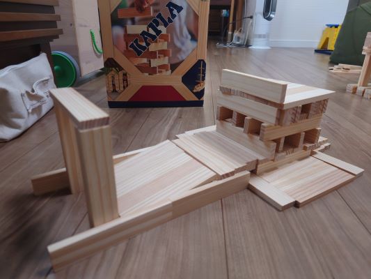 先月KAPLAを購入して早速遊んでいます。 とても奥が深くて大人も楽しいです。写真の「階段の塔」はパパと一緒に作ったものです。
