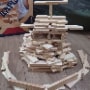 「もう4歳だからできるかな」と晴れて授与式となりました。どうしていいかわからない娘に、はねまあがなにげなく積み上げていると娘が「なかにはいっちゃおー♪」と片足を上からつっこむと「がしゃぁあん!」案の定壊れた。はねまあは意地になって「それならば!」と、娘を囲い始め、晴れて完成!ずっとじっとしていた娘が、この後すぐ「がしゃぁあん!」は言うまでもありません。二人とも良く頑張ったね。